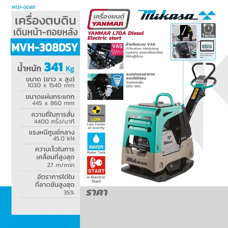 MIKASA เครื่องตบดินเดินหน้า-ถอยหลัง (ดีเซล) รุ่น MVH-308DSY
