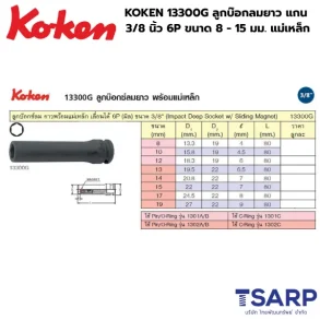 KOKEN 13300G ลูกบ๊อกลมยาว 3/8 นิ้ว-6P ขนาด 8-19 มม. พร้อมแม่เหล็ก