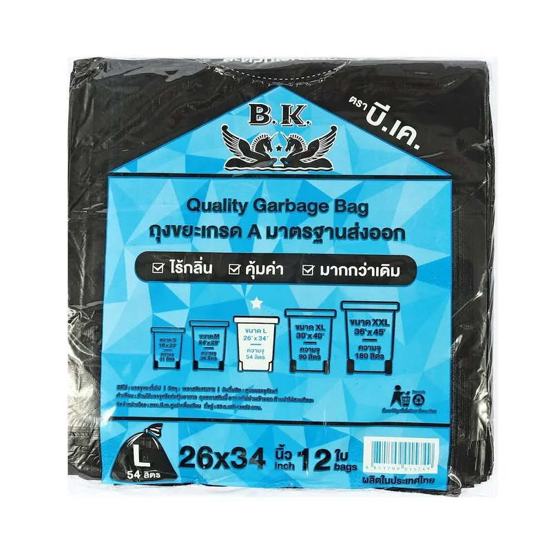 BK ถุงขยะแบบบาง 26 X 34″ (1โหล/12แพ็ค)