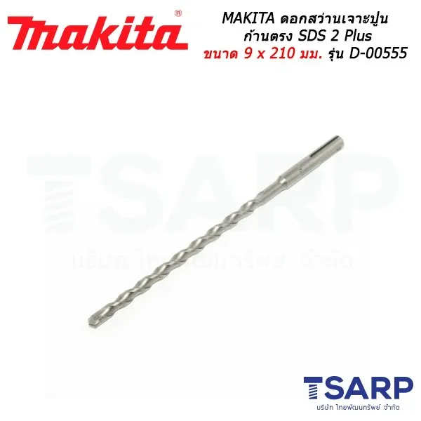 MAKITA ดอกสว่านเจาะปูนก้านตรง SDS 2 Plus ขนาด 9 x 210 มม. รุ่น D-00555
