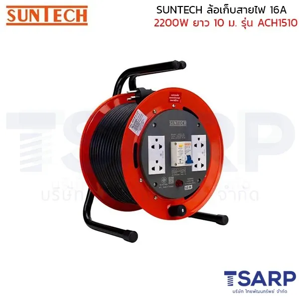 SUNTECH ล้อเก็บสายไฟ 16A 2200W สาย 3 x 1.5 sq.mm. ยาว 10 ม. เบรค์เกอร์ RCBO รุ่น ACH1510