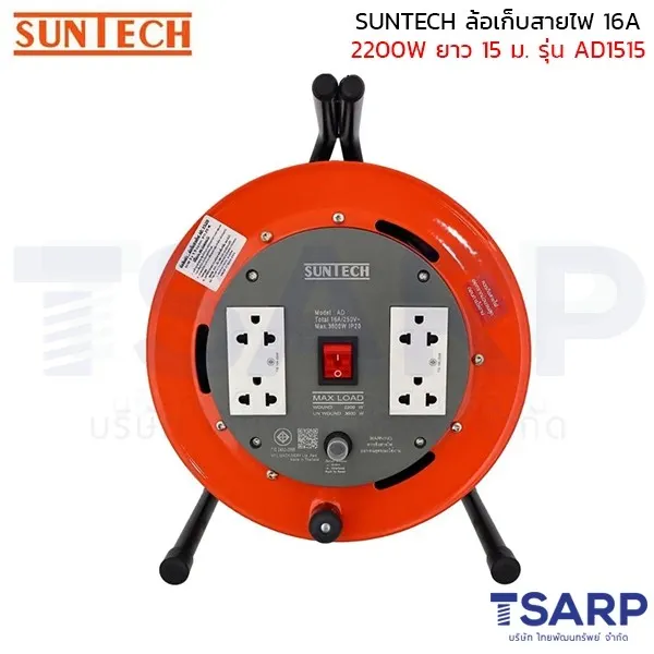 SUNTECH ล้อเก็บสายไฟ 16A 2200W สาย 3 x 1.5 sq.mm. ยาว 15 ม. รุ่น AD1515