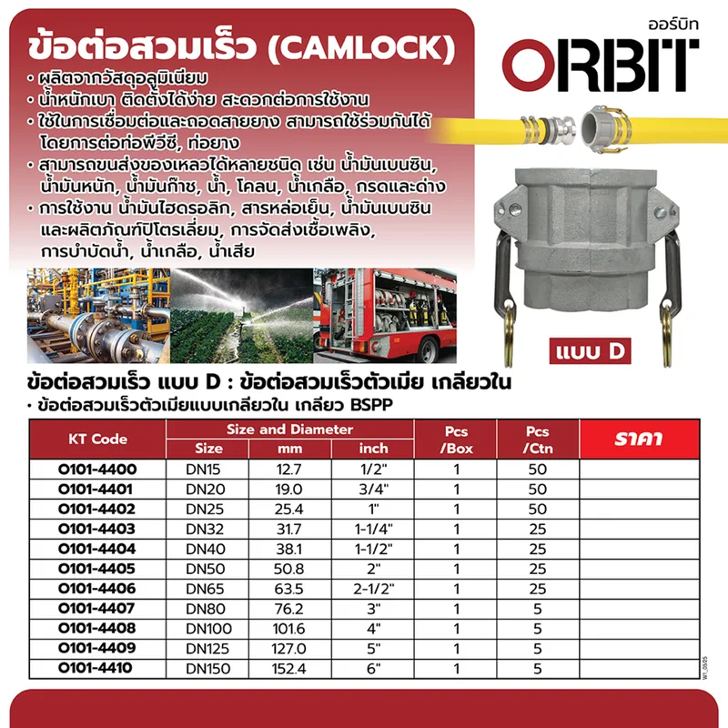 ORBIT ข้อต่อสวมเร็ว อลูมิเนียม TYPE D ขนาด 2″