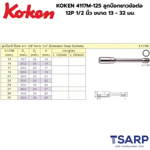 KOKEN 4117M-125 ลูกบ๊อกยาวข้อต่อ 12P 1/2 นิ้ว ขนาด 13 – 32 มม.