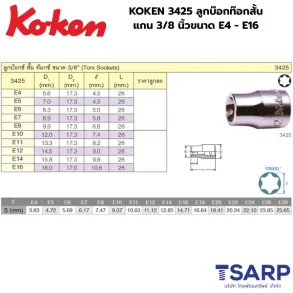 KOKEN 3425 ลูกบ๊อกท๊อกสั้น แกน 3/8 นิ้ว ขนาด E4 – E16