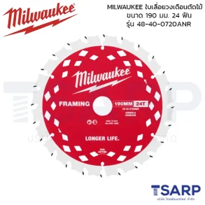 MILWAUKEE ใบเลื่อยวงเดือนตัดไม้ 190 มม. Thin Kerf 24 ฟัน รุ่น 48-40-0720ANR