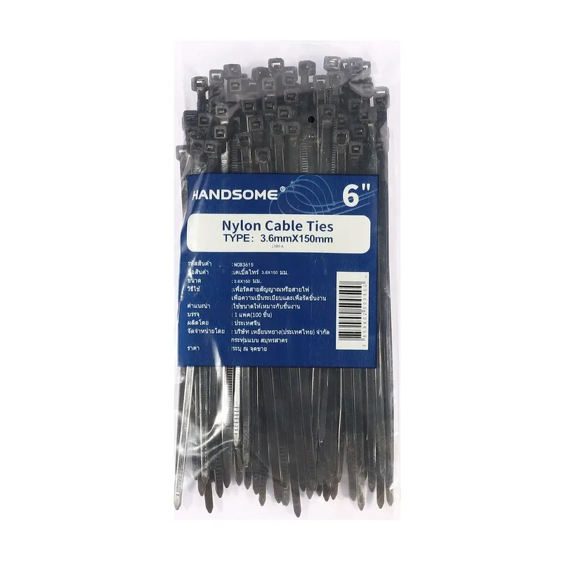 HANDSOME NCB3615 เคเบิ้ลไทร์ 6″ ดำ 3.6 มม. 100 เส้น