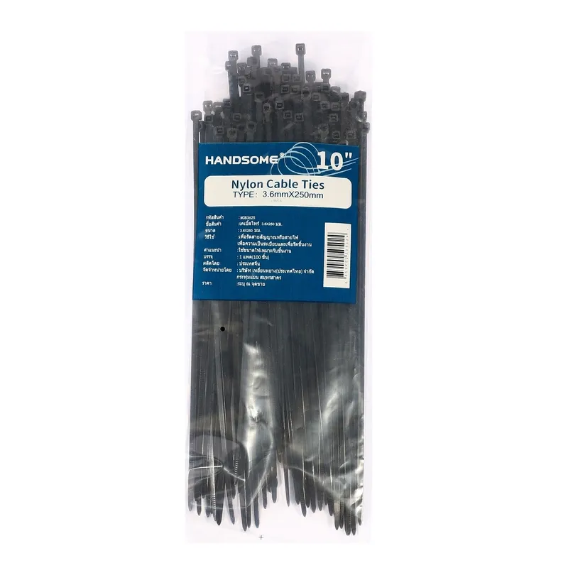 HANDSOME NCB3625 เคเบิ้ลไทร์ 10″ ดำ 3.6 มม. 100 เส้น