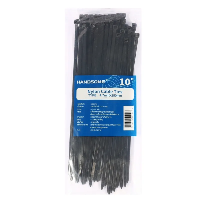 HANDSOME NCB4725 เคเบิ้ลไทร์ 10″ ดำ 4.7 มม. 100 เส้น