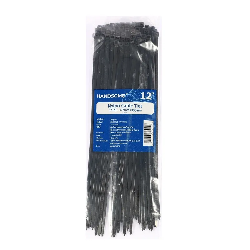 HANDSOME NCB4730 เคเบิ้ลไทร์ 12″ ดำ 4.7 มม. 100 เส้น