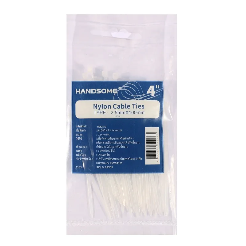 HANDSOME NCW3625 เคเบิ้ลไทร์ 10″ ขาว 3.6 มม. 100 เส้น