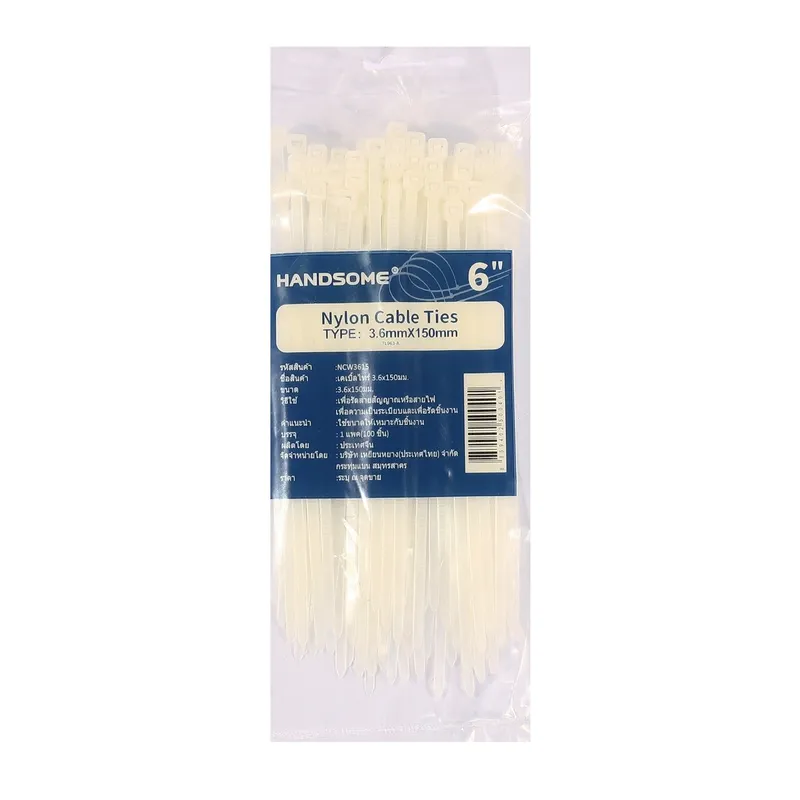 HANDSOME NCW3615 เคเบิ้ลไทร์ 6″ ขาว 3.6 มม. 100 เส้น