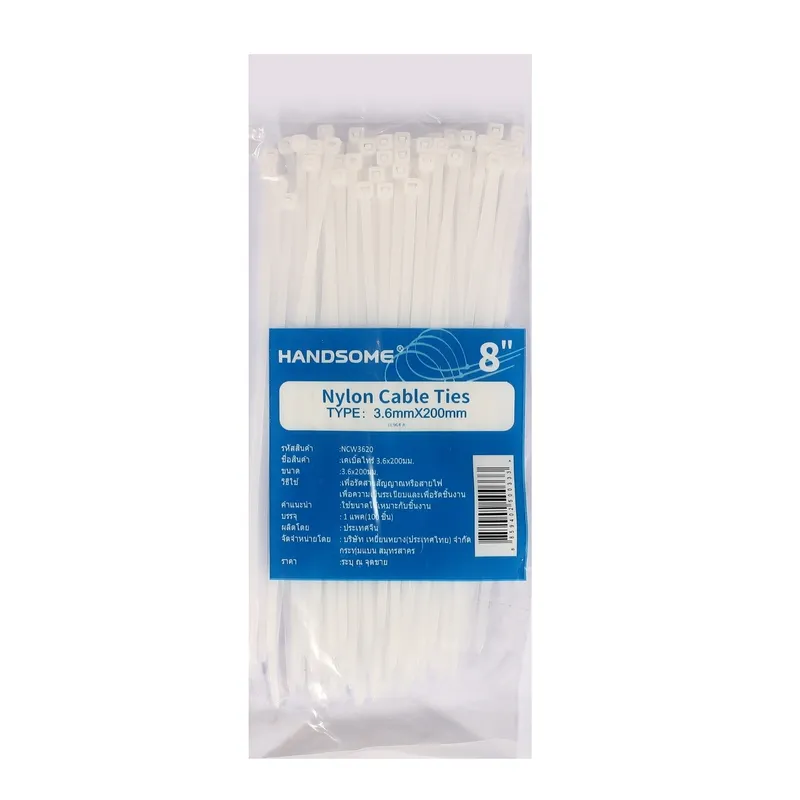 HANDSOME NCW3620 เคเบิ้ลไทร์ 8″ ขาว 3.6 มม. 100 เส้น
