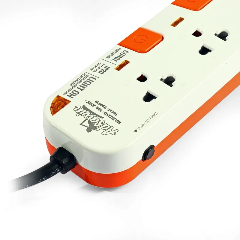 4 ช่องเสียบ 2 USB และ 5 สวิตซ์เปิด-ปิด 10 แอมป์ ความยาวสายไฟ 10 เมตร