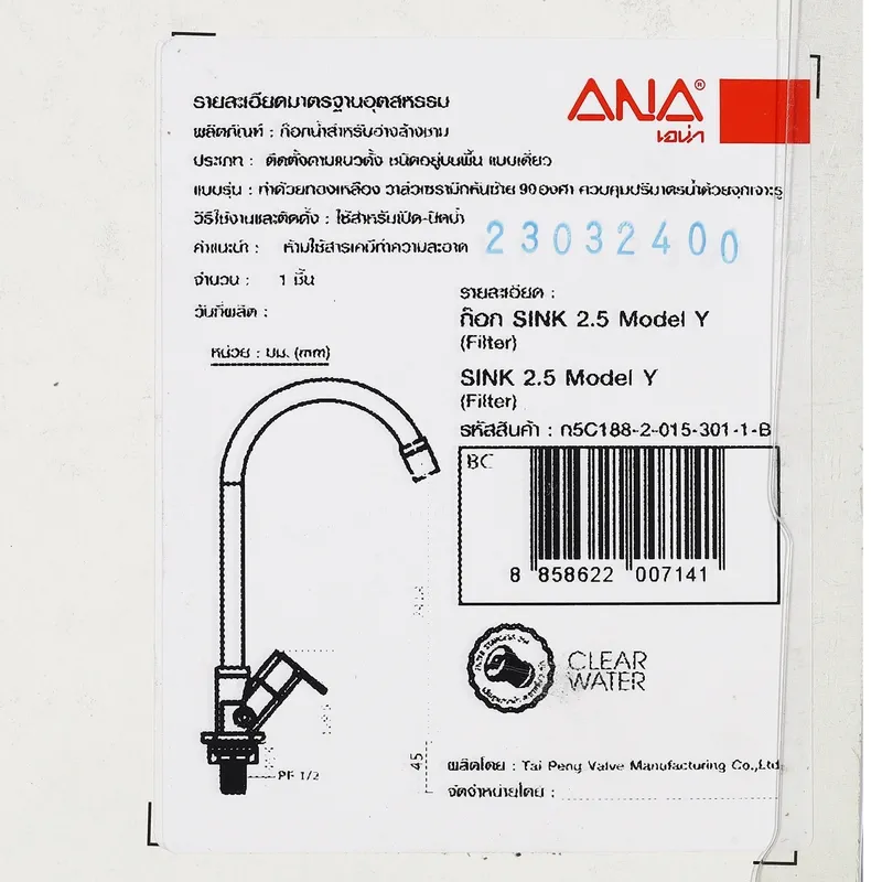 ก๊อกอ่างล้างจาน ตั้งพื้น รูปตัว Y รุ่น 1882 ขนาด 1/2 นิ้ว มีฟิลเตอร์