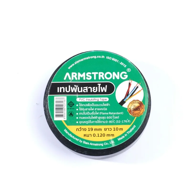 เทปพันสายไฟ สีดำ 120MIC ARMSTRONG ขนาด 19 มม. X 10 ม. หนา 0.125 มม.