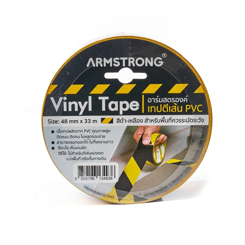 เทปตีเส้นพื้น ARMSTRONG สีเหลือง-ดำ ขนาด 48 มม.X33 ม. เทปตีเส้น