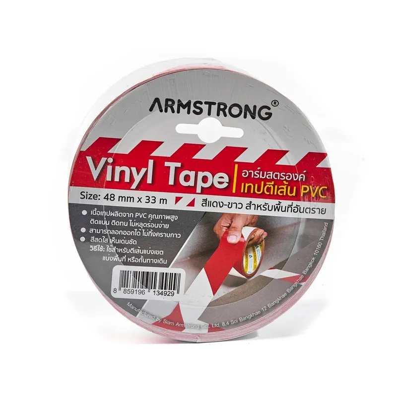 เทปตีเส้นพื้น ARMSTRONG สีแดง-ขาว ขนาด 48 มม.X33 ม. เทปตีเส้น