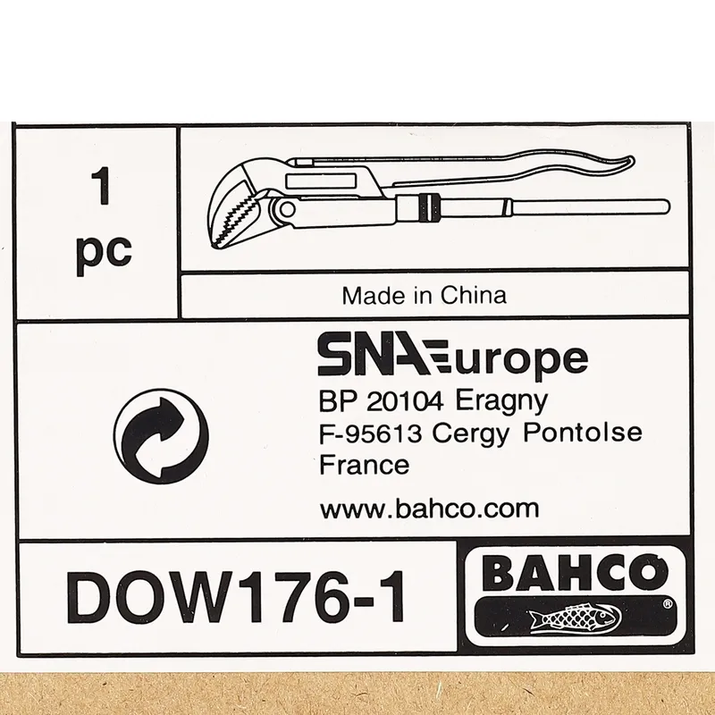 ประแจจับท่อ DOW ปากเฉียง 45องศา BAHCO ขนาด 1 นิ้ว (DOW 176-1)