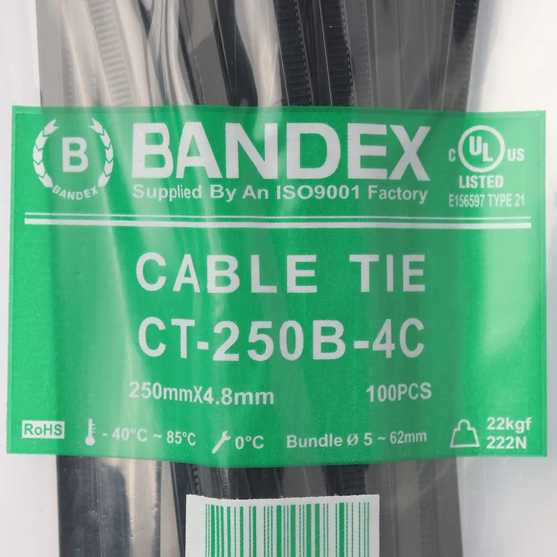 BANDEX CT-250B-4C เคเบิ้ลไทร์ 10″ ดำ (100เส้น)