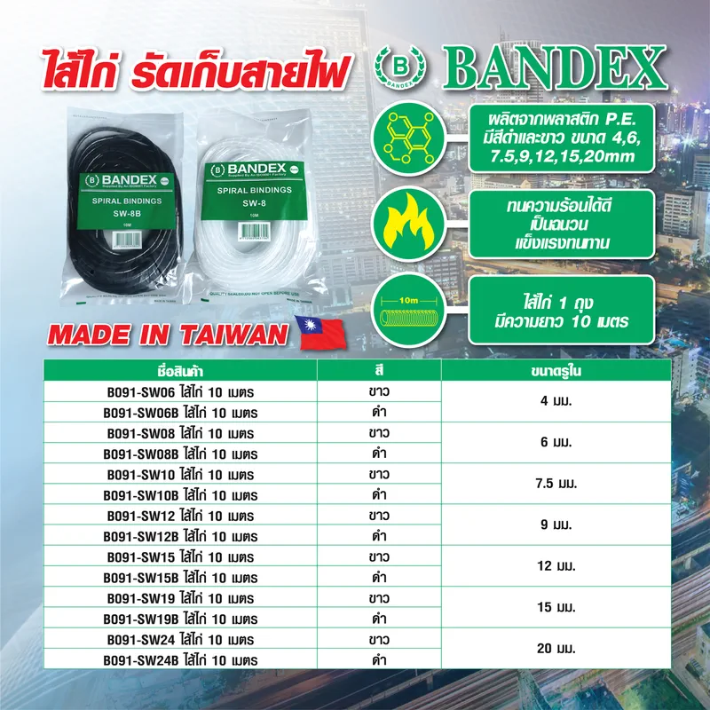 BANDEX SW-24B ไส้ไก่ พันสายไฟ 10 เมตร(สีดำ)