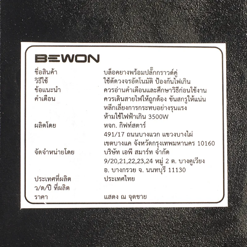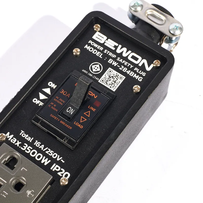 บล็อกยาง 2×8 BEWON รุ่น BW-284BMG ปลั๊กกราวด์คู่ มีเบรกเกอร์