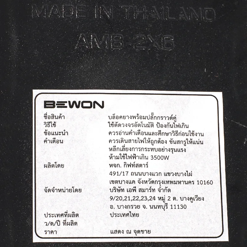 บล็อกยางพร้อมสายไฟ 2×4 BEWON รุ่น BW-22VCT ความยาวสายไฟ 3 เมตร