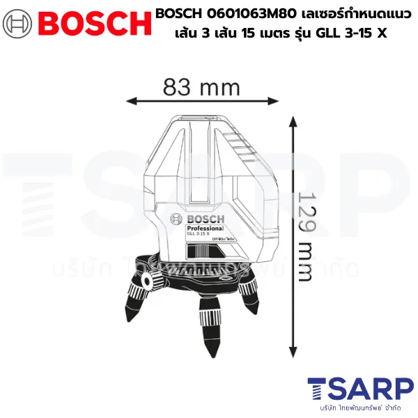 BOSCH 0601063M80 เลเซอร์กำหนดแนวเส้น 3 เส้น 15 เมตร รุ่น GLL 3-15 X