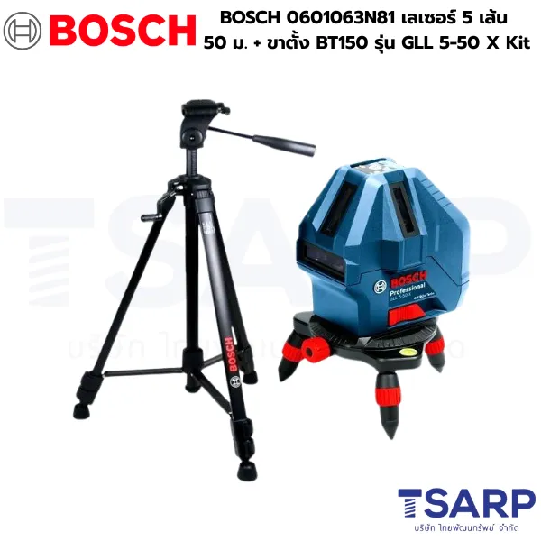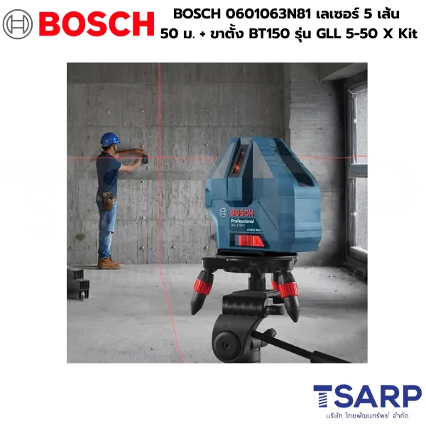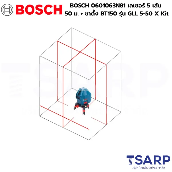 BOSCH 0601063N81 เลเซอร์กำหนดแนวเส้น 5 เส้น 50 เมตร + ขาตั้ง BT150-5/8นิ้ว รุ่น GLL 5-50 X Kit