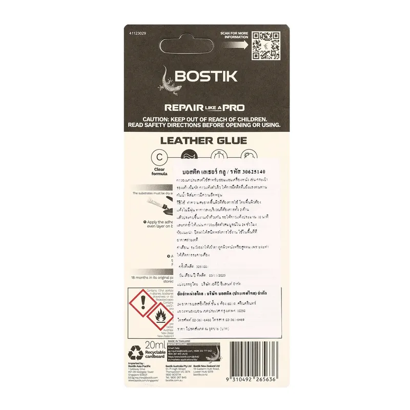 BOSTIK Leather Glue กาวติดหนังสีใส ขนาด 20 มล.