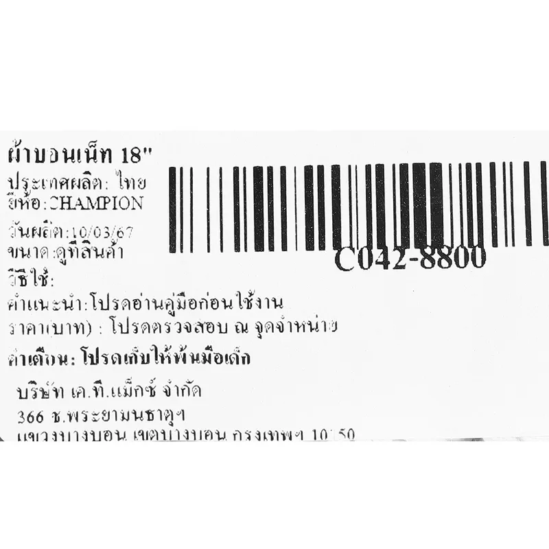 CHAMPION ผ้าบอนเน็ท 18″