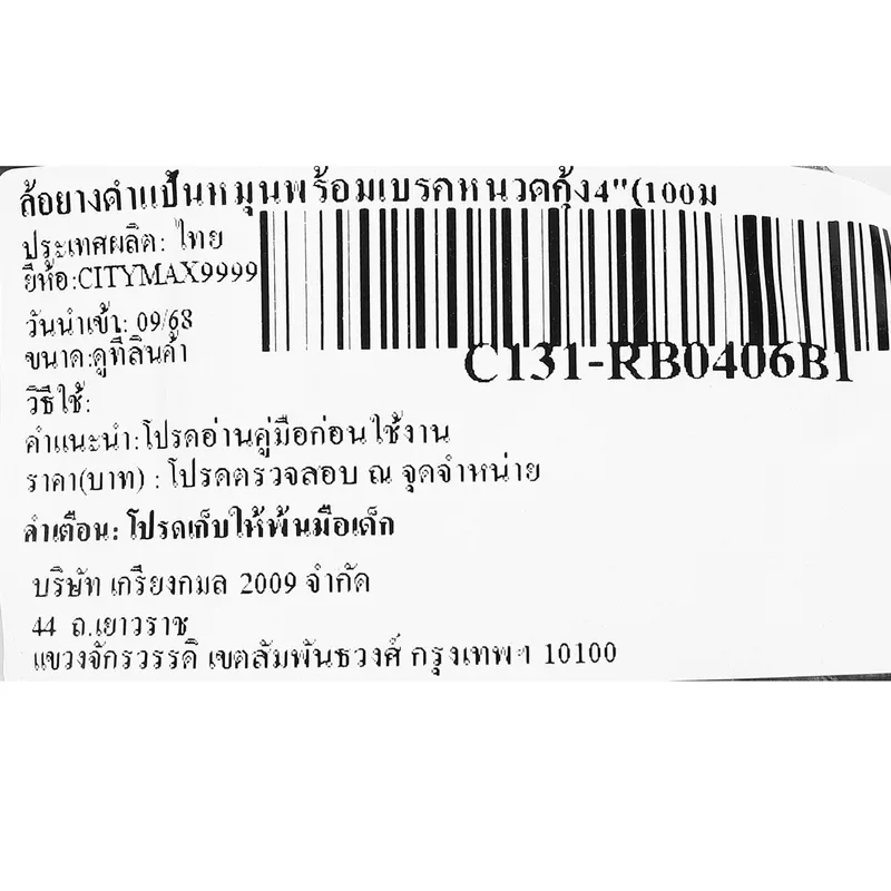 ล้อยางดำ แป้นหมุน พร้อมเบรคหนวดกุ้ง ซิตี้แม็กซ์ (CITYMAX) ขนาด 4 นิ้ว