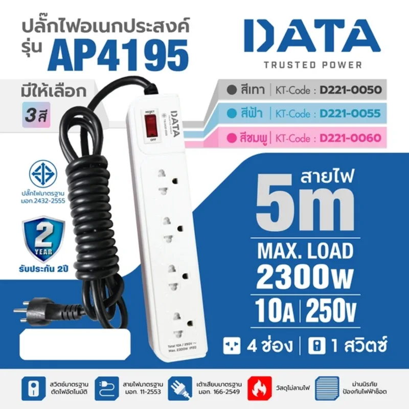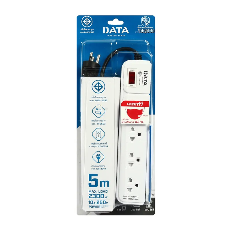 กระแสไฟสูงสุด 10 แอมป์ รองรับไฟ 2300 วัตต์ แรงดันไฟ 250 โวลต์ มาตรฐาน