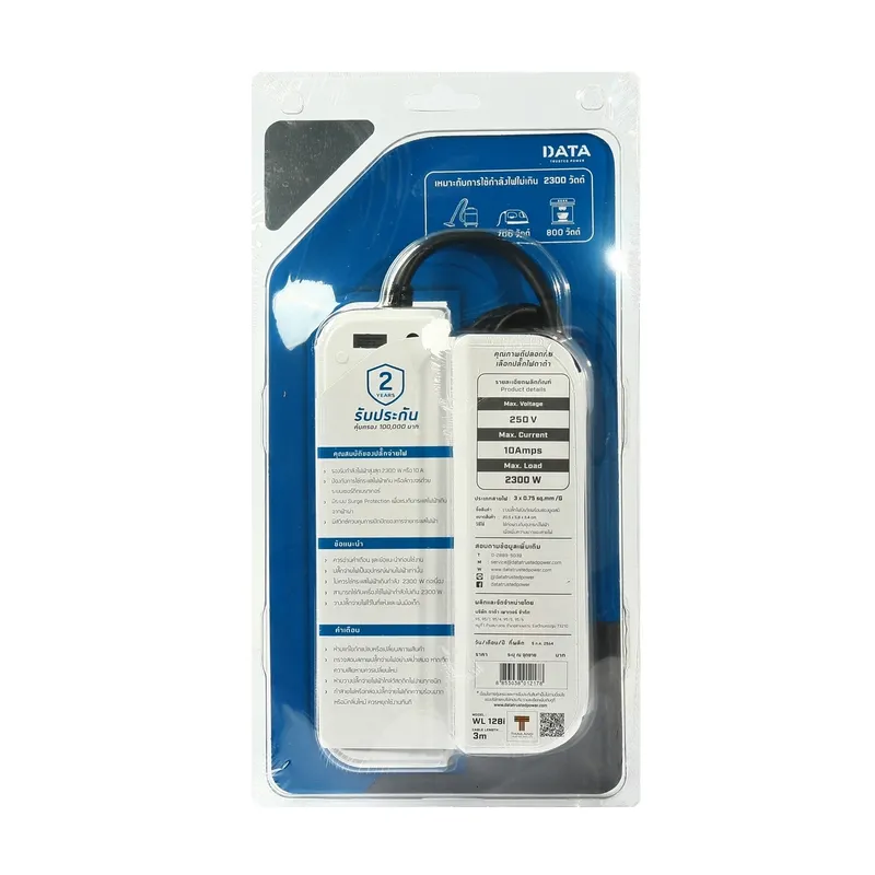 ปลั๊กไฟ ปลั๊กรางไฟ ปลั๊กพ่วง ดาต้า รุ่น WL128I เต้ารับ 2 ช่องเสียบ 1