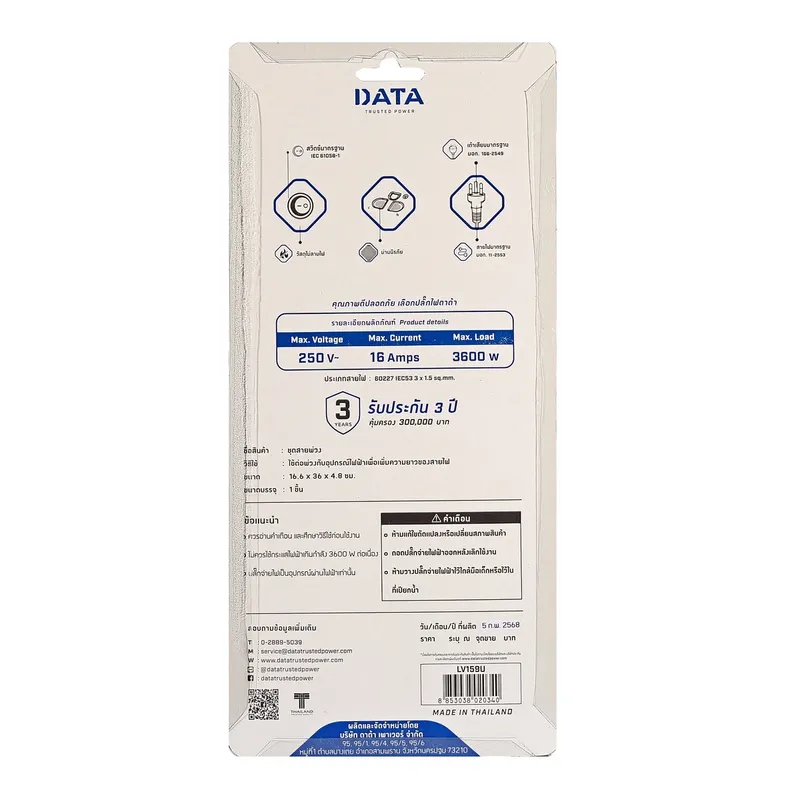 • รองรับกำลังไฟสูงสุด 3600W, 16A : รองรับการใช้งานอุปกรณ์ไฟฟ้าหลายชนิด