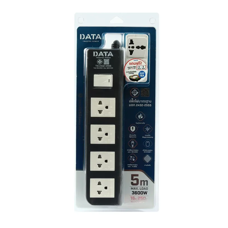 ปลั๊กไฟมาตรฐาน มอก. DATA รุ่น APDW4245 ปลั๊กไฟ 3 ตา 4 ช่อง 1 สวิตซ์ 16