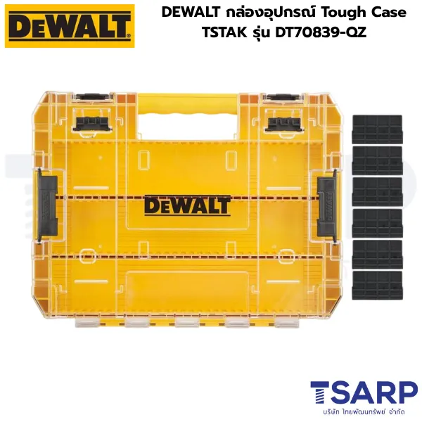 - DEWALT กล่องอุปกรณ์ Tough Case TSTAK รุ่น DT70839-QZ เป็นผลิตภัณฑ์ที่ผสานความทนทานระดับ Tough Case เข้ากับระบบจัดเก็บแบบโมดูลาร์ TSTAK ที่โด่งดังของ DEWALT กล่องนี้ออกแบบมาเพื่อการจัดเก็บและขนย้ายอุปกรณ์เสริม เครื่องมือขนาดเล็ก หรือชุดดอกไขควง/ดอกสว่านได้อย่างเป็นระบบและปลอดภัย