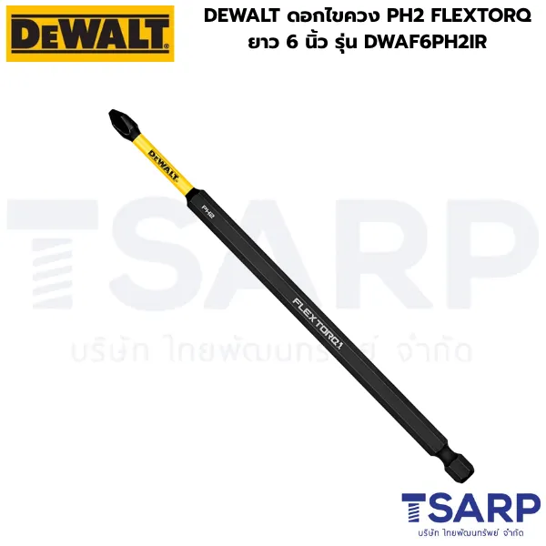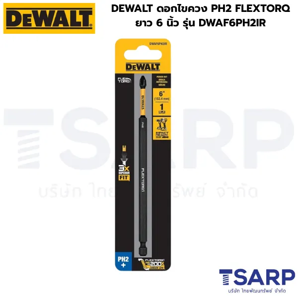 - DEWALT DWAF6PH2IR ดอกไขควงคุณภาพสูงแบบ FLEXTORQ ที่ออกแบบมาเพื่อรองรับแรงบิดสูงสุดในงานขันสกรูระดับมืออาชีพ ดอกไขควงรุ่นนี้มีความยาว 6 นิ้ว (150 มม.) เหมาะสำหรับการขันในพื้นที่เข้าถึงยาก ให้แรงบิดสูงโดยไม่หักหรือสึกหรอเร็ว