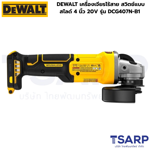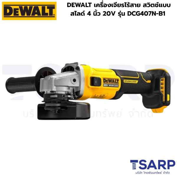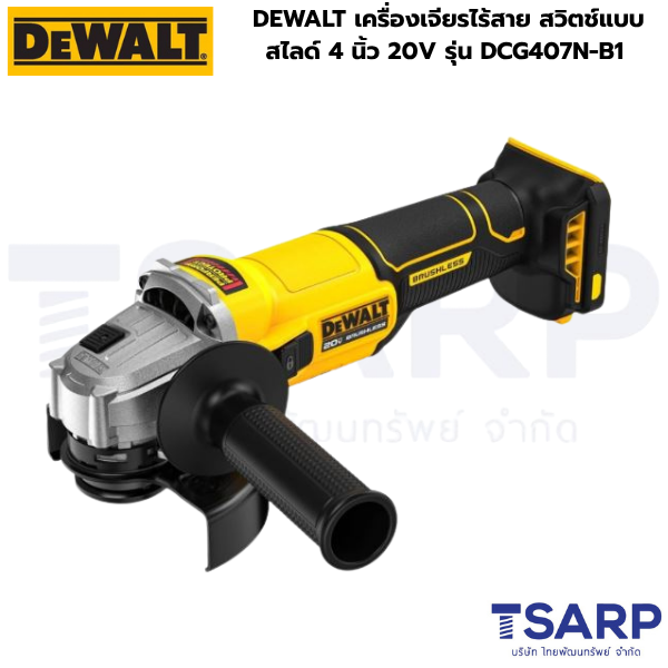 DEWALT เครื่องเจียรไร้สาย สวิตช์แบบสไลด์ 4 นิ้ว 20V รุ่น DCG407N-B1 (เครื่องเปล่า)