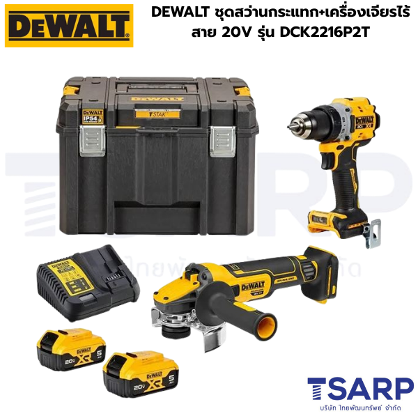 DEWALT ชุดสว่านกระแทก+เครื่องเจียรไร้สาย 20V รุ่น DCK2216P2T