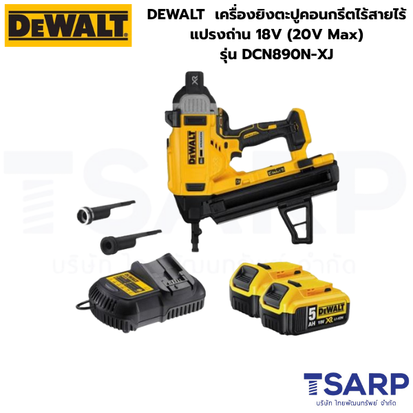 DEWALT เครื่องยิงตะปูคอนกรีตไร้สายไร้แปรงถ่าน 18V (20V Max) พร้อมแบตเตอรี่ 5Ah และ แท่นชาร์ต 4Ah รุ่น DCN890N-XJ-SET