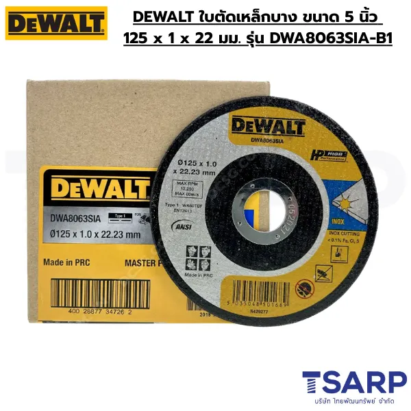 DEWALT ใบตัดเหล็กบาง ขนาด 5 นิ้ว 125 x 1 x 22 มม. รุ่น DWA8063SIA-B1