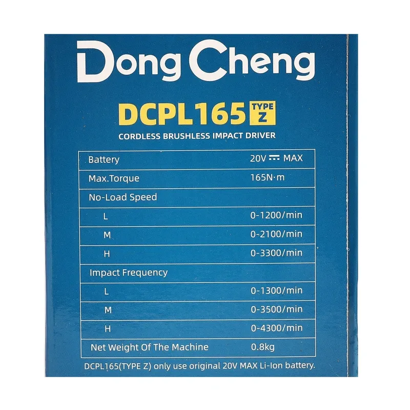 DONG CHENG สว่านไขควงกระแทก 20 โวลต์ รุ่น DCPL165 (TYPE Z)