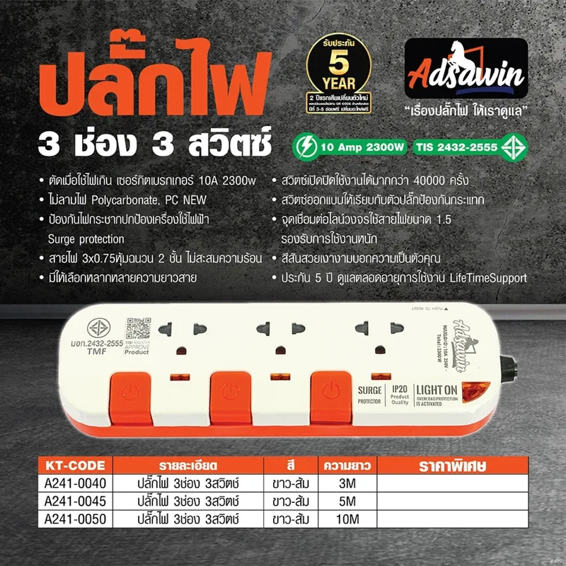 • กำลังไฟฟ้าสูงสุด : 230 วัตต์