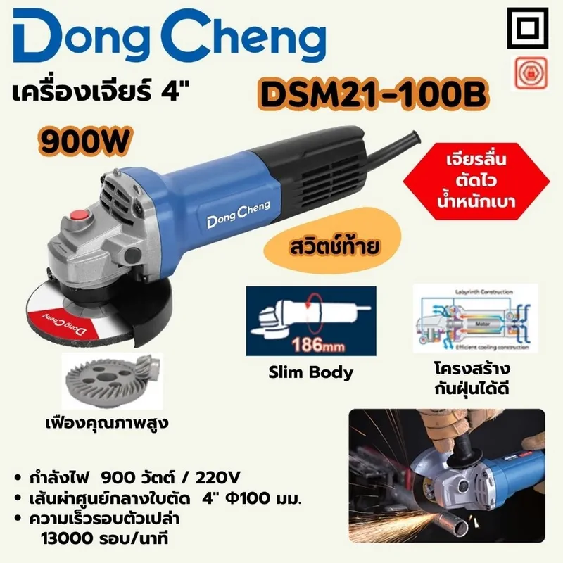 กำลังไฟฟ้า 900 วัตต์ ความเร็วรอบตัวเปล่า 4200-13000 รอบ/นาที (ดองเช็ง)