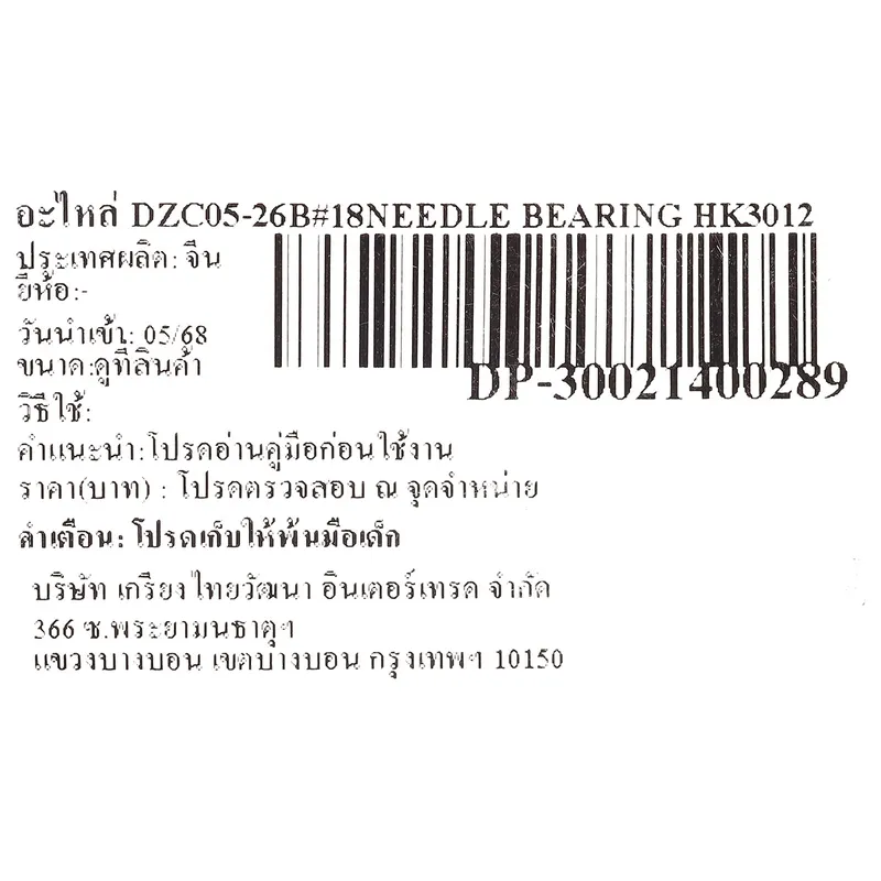 DONGCHENG อะไหล่ DZC05-26B#18NEEDLE BEARING HK3012