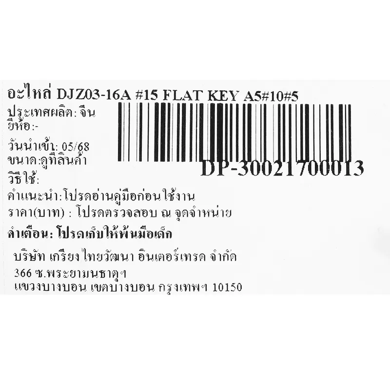 DONG CHENG อะไหล่ Flat Key A5×10×5 #15 ใช้กับสว่านไฟฟ้า รุ่น DJZ03-16A (ดองเช็ง)