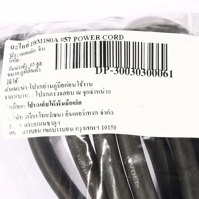 DONG CHENG Power Cord (European Standard Plug) #57 ใช้กับเครื่องเครื่องเจียร์ 7″ – 2200W รุ่นDSM180A (ดองเช็ง)