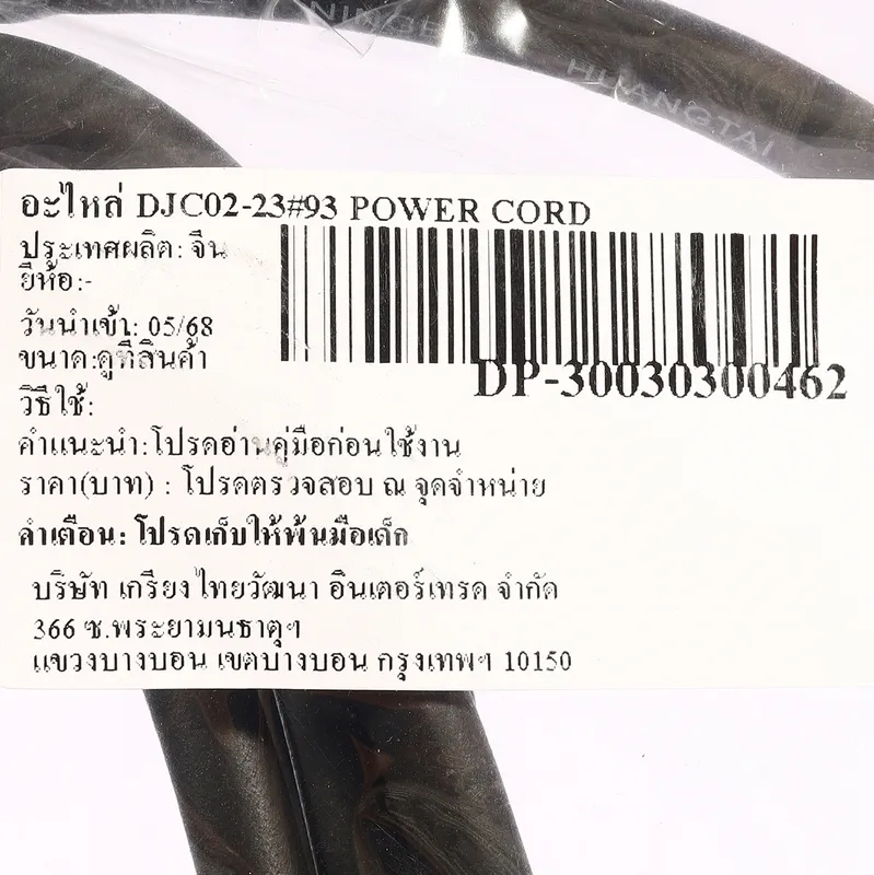 DONG CHENG อะไหล่ Power Cord (European Standard Plug) #93 ใช้กับสว่านแท่นแม่เหล็ก รุ่น DJC02-23 (ดองเช็ง)