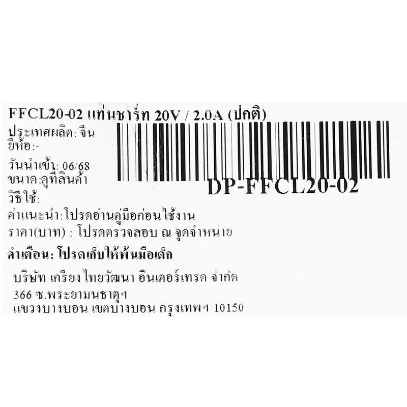 • แรงดันไฟฟ้าจ่ายออก : 20 โวลต์